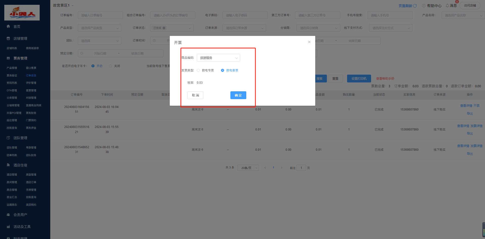 票务,酒店,收银,餐饮,短信等 订单列表处添加开票和发票详情按钮(订单状态都是已完成才展示)